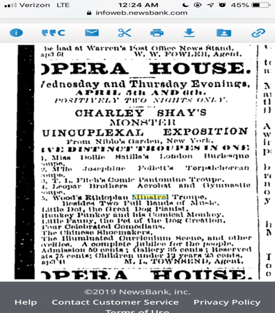 Minstrel shows were commonplace, and their history is complicated. These shows were considered entertainment, and Evansville took part in the rise of their popularity. Minstrel shows typically consisted of: