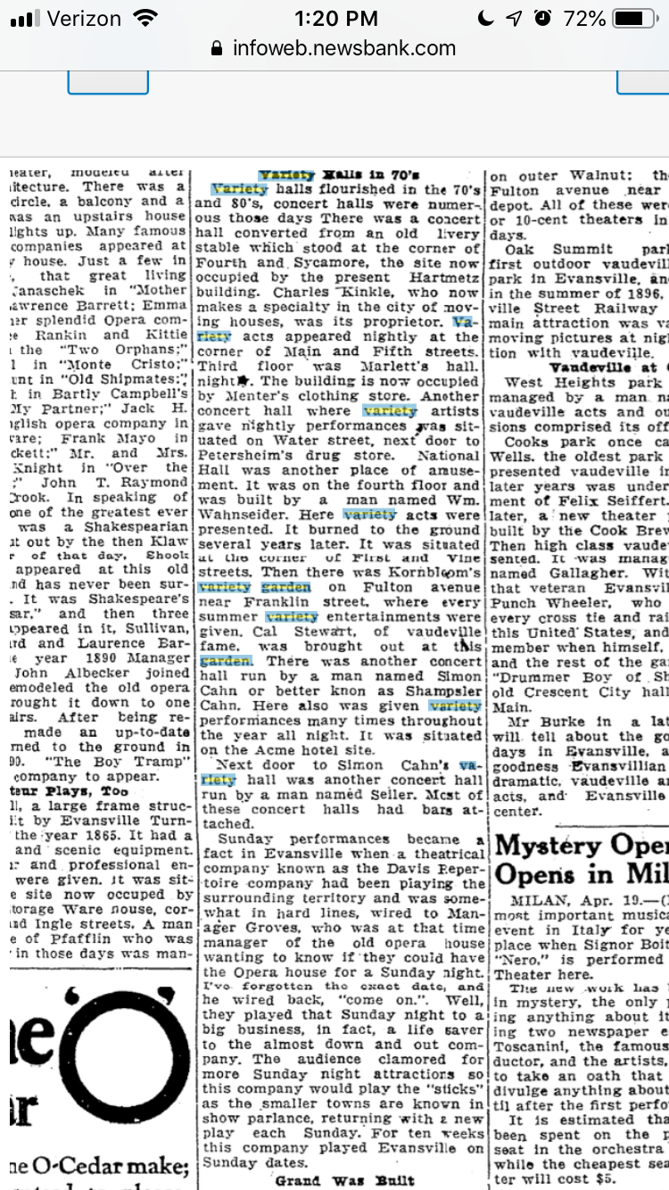 Knecht, Karl K. Was It Yesterday? The Evansville Story: Theaters and Entertainment. Edited by James E Morlock, 1980.